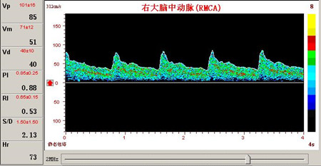 右大腦中動脈血流速度頻譜圖