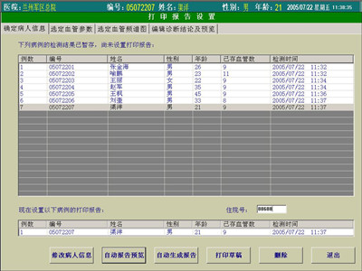 1)操作者可自動預覽報告和打印草稿,打印草稿只打印參數值列表不打印頻譜圖像,目的是方便操作者進行仔細分析后再詳細編輯報告;