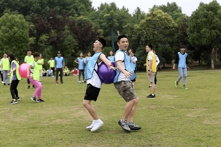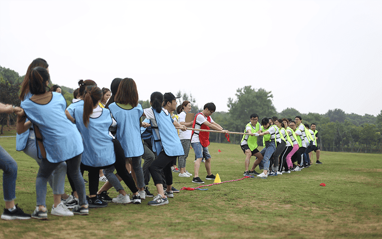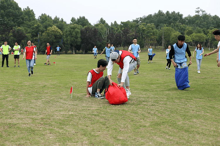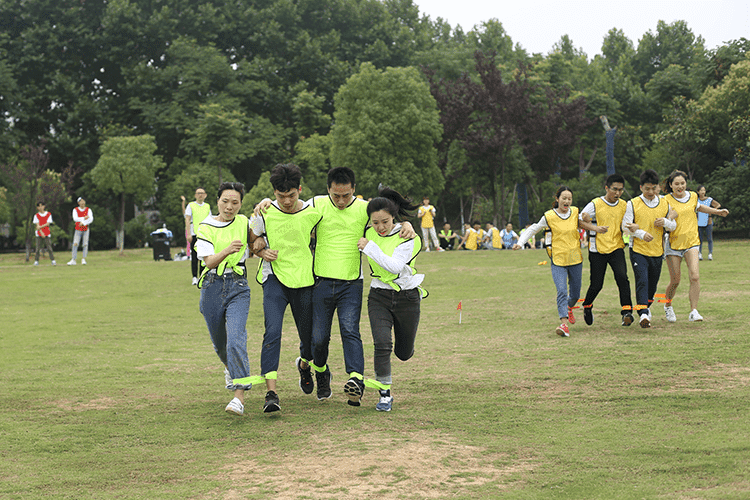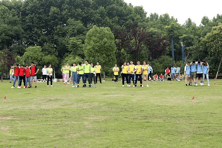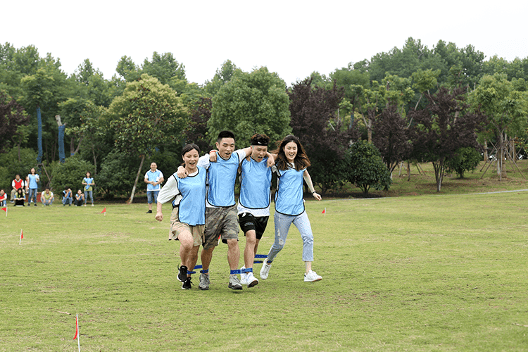 第二個(gè)比賽是四人五足,顧名思義就是每組派出4名隊(duì)員參加,用游戲道具將4個(gè)人的腿兩兩綁在一起,四人并行,先到終點(diǎn)的隊(duì)伍獲勝,這個(gè)游戲考驗(yàn)的就是每組隊(duì)員配合的默契性,不是一個(gè)人跑的快就可以,一定要和大家步調(diào)一致才行。一二一二、一二一二紅隊(duì)的四個(gè)隊(duì)員邁著整齊的步伐,喊著響亮的口后,雖然一開始他們并不是最快的,但是他們一直跟隨著自己的口號(hào)節(jié)奏,逐步趕上前面的隊(duì)伍,有的隊(duì)伍一開始很快,但是缺乏口令,走著走著步調(diào)就就不一致,有的隊(duì)伍中的隊(duì)員自己很著急,步子邁的很大,沒有顧及到其他隊(duì)員,導(dǎo)致摔倒或道具掉落,按照游戲規(guī)則要調(diào)整好了才能繼續(xù)比賽。最終紅隊(duì)獲勝。這個(gè)游戲就是告訴我們?cè)诠ぷ髦行枰嗷ヅ浜希拍芡瓿扇蝿?wù),很多事情不是你一個(gè)人就可以,個(gè)人英雄在企業(yè)里是不存在。