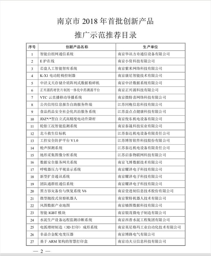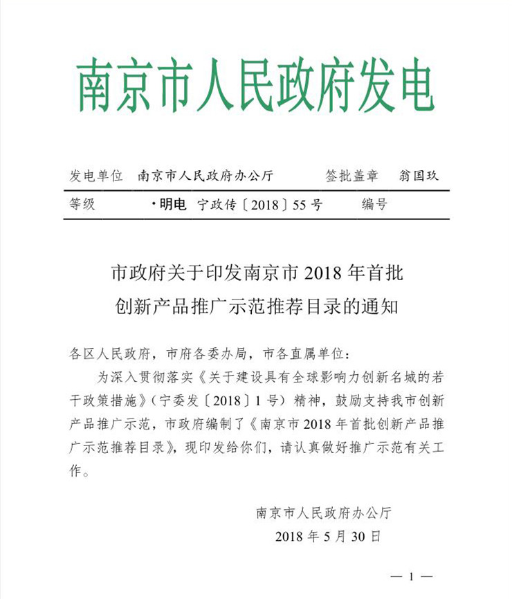 市政府關于印發南京市2018年首批創新產品推廣示范目錄的通知
